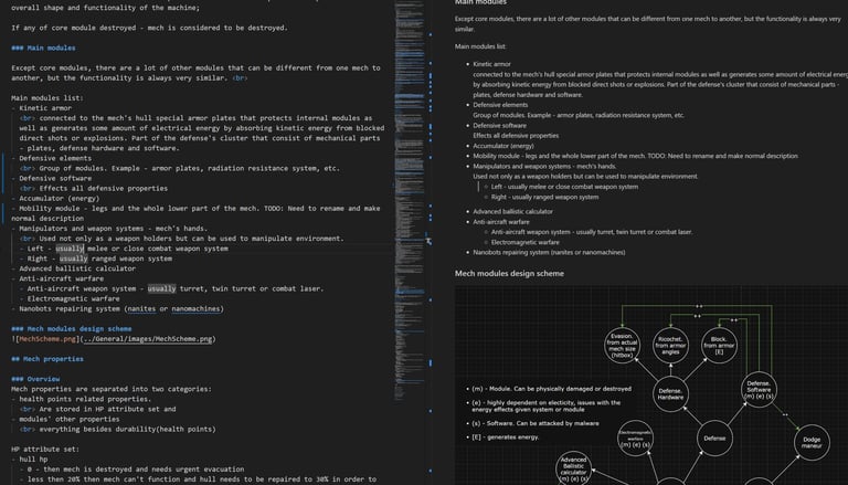A strong example is the implementation of different damage over time effects and the split between base and bonus damage, which increased replayability and provided players with more options for customizing their builds.Reorganized a large amount of fragmented documentation into a clear, cohesive vision, as example, adding part of UI wireframes.